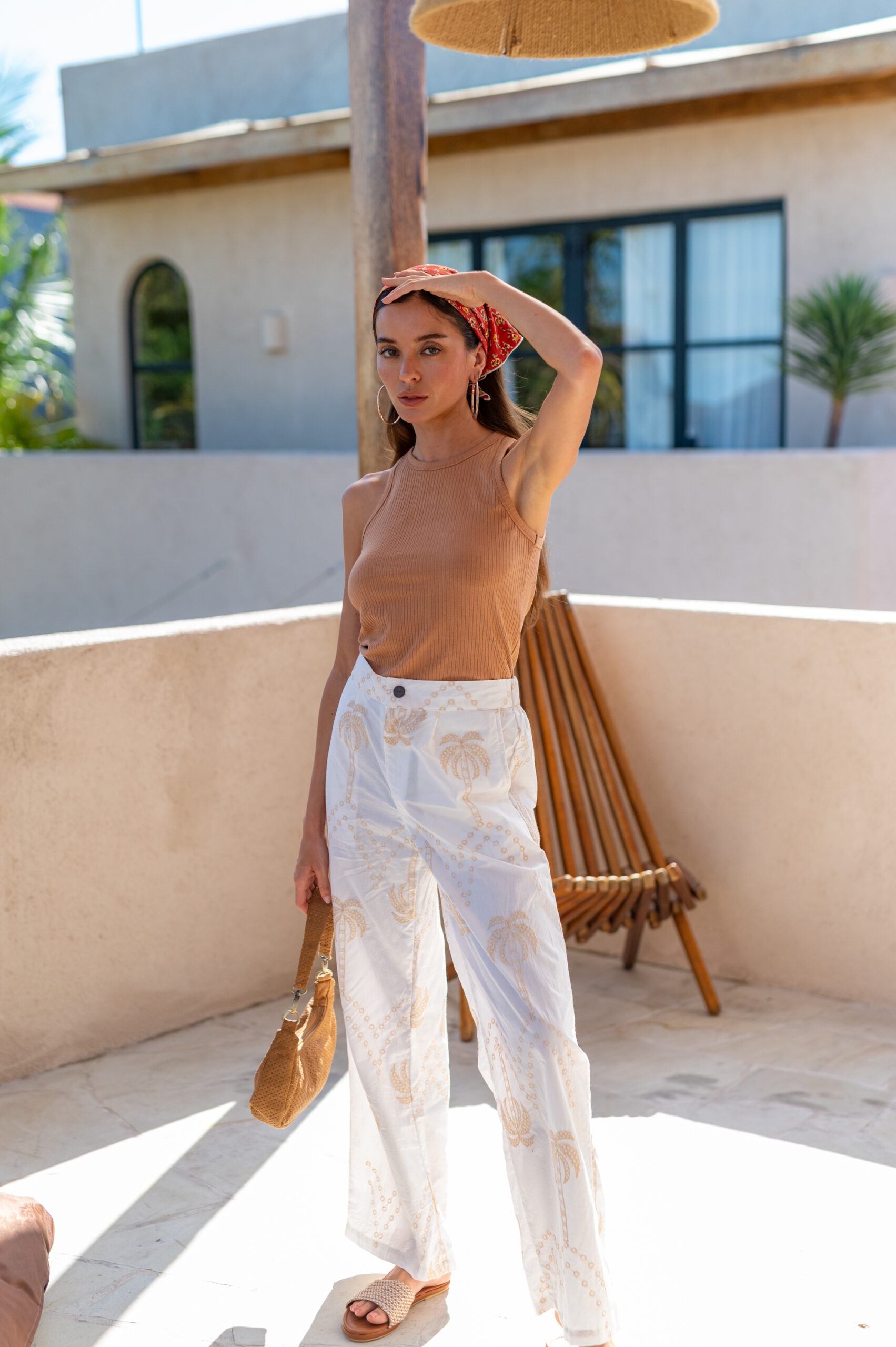 A soft ribbed singlet in warm toffee tones — stretchy, flattering, and made for everyday comfort.