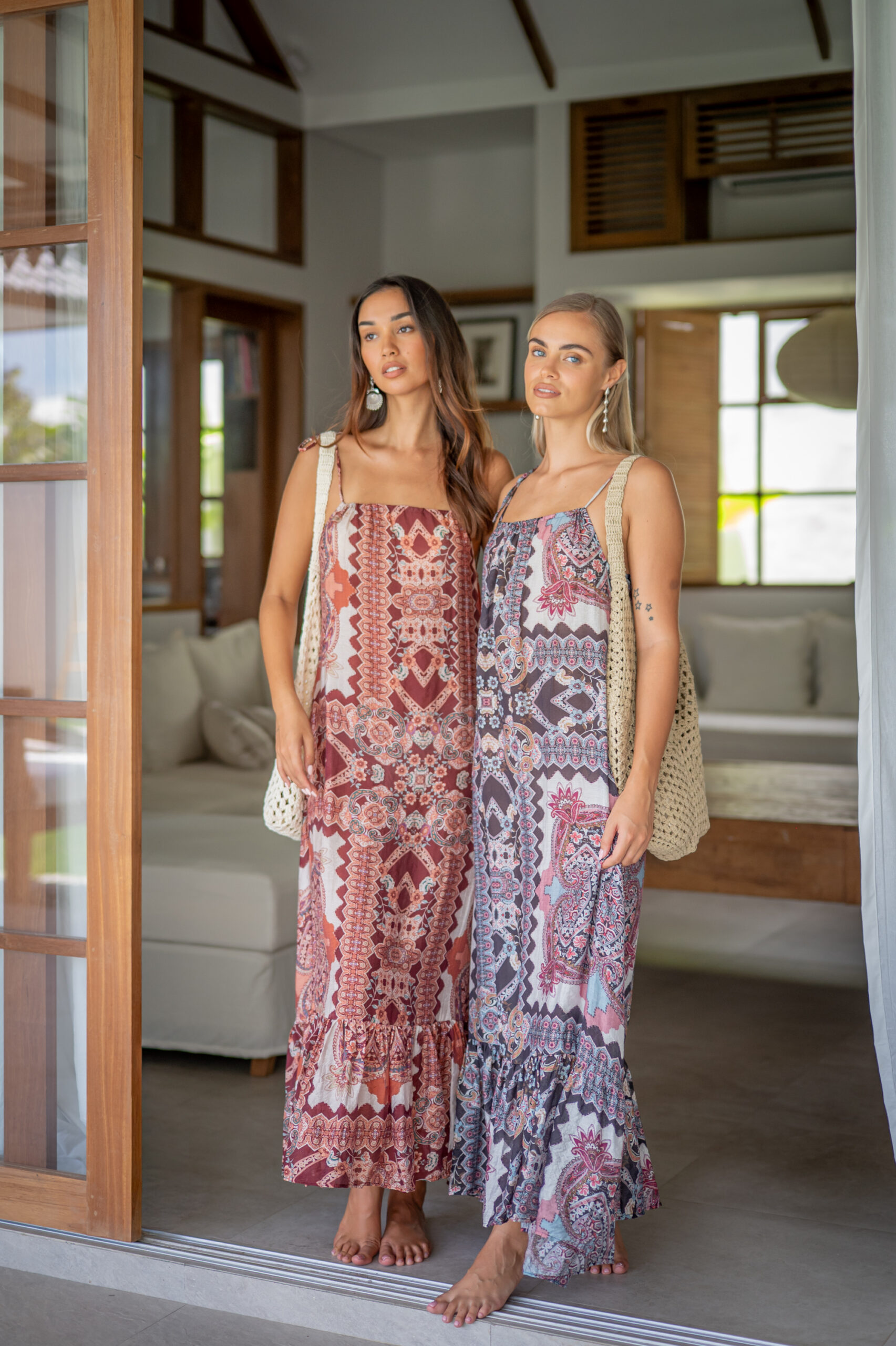 The Imani Maxi Dress in Jaipur Maroon captures the beauty of relaxed resort dressing with its flowing silhouette and intricate bohemian-inspired print.