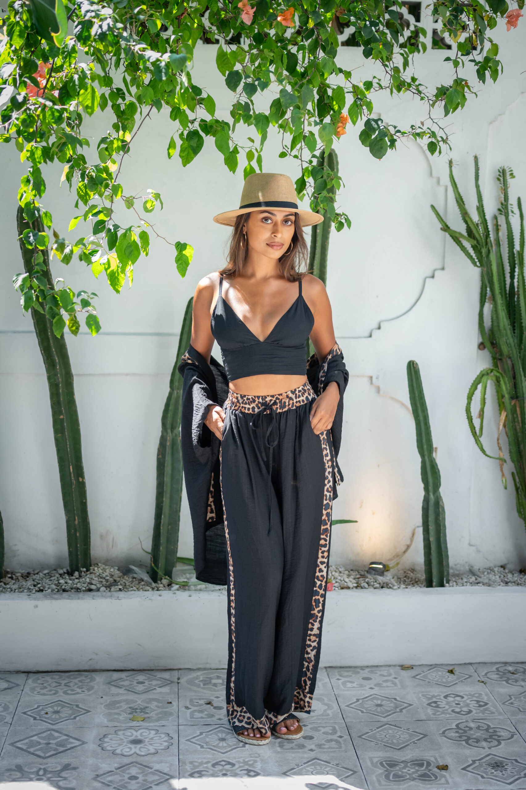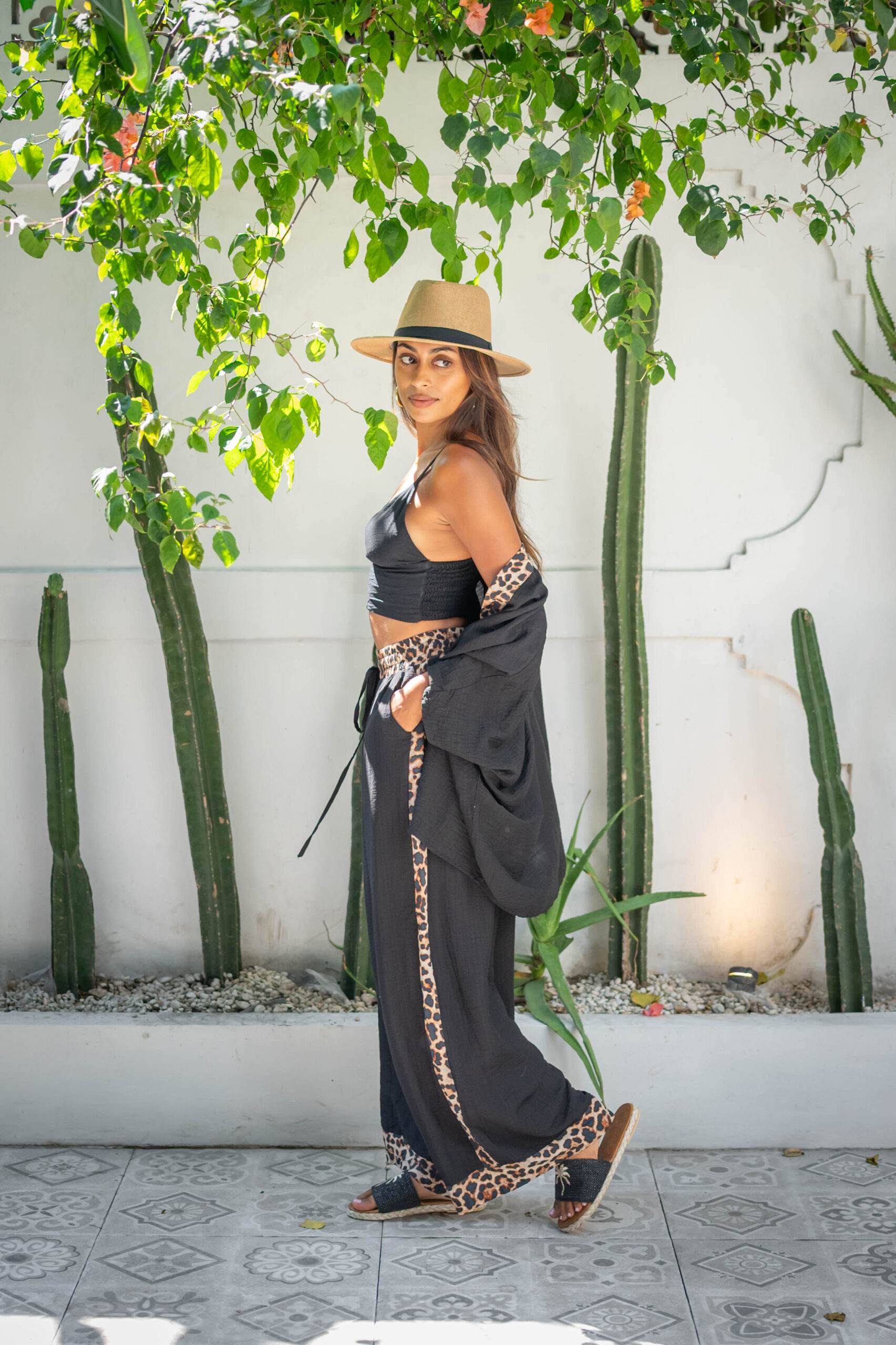 The Leoni Kimono in Black Leopard is a relaxed, lightweight layer perfect for warm days and balmy nights. Made from soft textured rayon, it features leopard trim detailing along the edges for a subtle statement. Designed for easy wear over bikinis, bralettes, or matching Leoni Pants, this kimono adds that extra hint of luxe to any outfit. Ideal for travel, lounging, or strolling through the tropics in style.