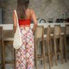 The Lilou Pants in Sunset Orange feature a bold retro-inspired print, wide-leg silhouette, and elastic waistband for all-day resort comfort and style.